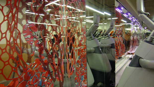 Es imposible captar el efecto de infinito que desprenden los espejos en la habitación, pero algunos divertidos efectos pueden quedar atrapados en los espejos de los nichos de la guarnición y repitiendo el patrón en un plano paralelo. Una habitación larga y estrecha llena de equipo presenta desafíos a la vista total, volver con un camarógrafo si se puede.