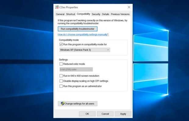 Windows incluye la configuración de compatibilidad que puede hacer la antigua aplicación funcional. Acceder estos, clic derecho sobre el atajo o .exe archivo > seleccione Propiedades. En windows 10 menú Inicio, haga clic con el botón derecho un acceso directo > seleccione Abrir ubicación de archivo > Propiedades > pestaña Compatibilidad. Si un trabajo de aplicación en windos XP pero no en windows 10, probar el programa en modo de compatibilidad y seleccionar Windows XP (Service Pack 3).