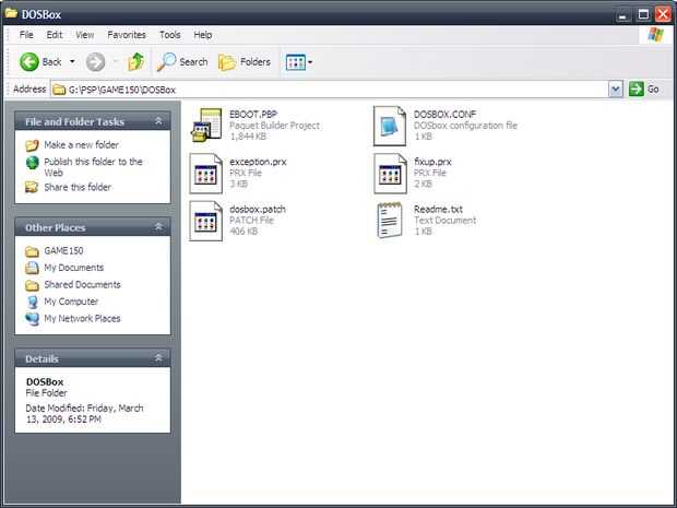 Si tienes una PSP con Custom Firmware copia los archivos de DOSBox (Eboot.pbp, DOSBOX. CONF, archivos .prx y el archivo DOSBox.patch) para MSROOT:\PSP\GAME150\DOSBox(create that folder)