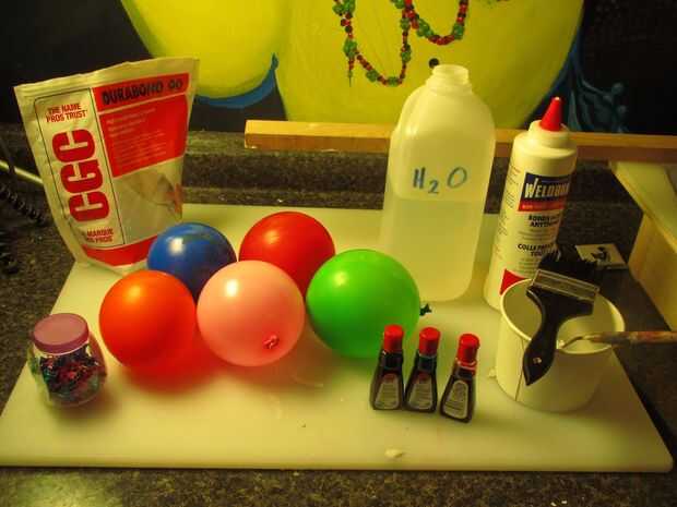 • Tranparente p 90 (creo que habría todo tipo de otros materiales para trabajar igual o mejor. He utilizado este compuesto de paneles de yeso, pero imagino que una solución de harina-sal-agua puede funcionar igual de bien. Parece frágil, dura, fina capa de material a la fractura cuando el globo se expande).
