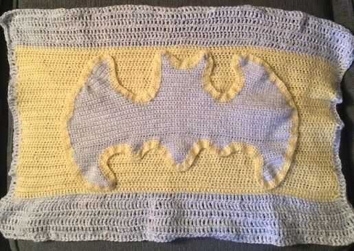 La mejor manera de iniciar esto sería alineando el símbolo en el centro del óvalo y coser/threading alrededor del rectángulo original de la bat primero. Así, puede asegurarse que es incluso con el símbolo de las líneas rectas de coser. Esto también debe ser el primer paso aunque no está cosiendo en un óvalo (como yo lo hice para la manta del bebé que se muestra en la imagen). Una vez que has ido alrededor de los cuatro lados de ese rectángulo, puede trabajar en el resto.