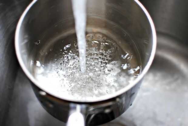 Coge el bol y llevarlo al fregadero y llenar 3/4 completo con agua caliente.