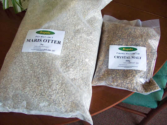 1) aplastada Malta pálida (utilicé Maris Otter) 7 libras o kg 3,5