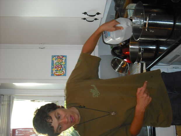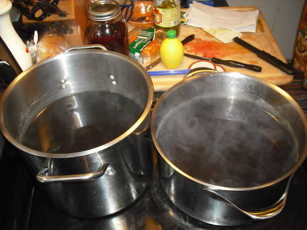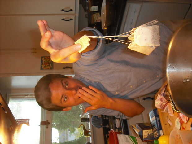 Ya que el frasco que la madre está en tiene dos galones del líquido, nos elabora dos galones de té. Tuvimos que dividir el agua en la estufa porque no tenemos una olla que ambos galones de agua. 16 bolsas de té que utilizamos en todos, ocho en una olla de agua y ocho en el otro. La normativa es ocho bolsitas de té para un galón de agua y una taza de azúcar a un galón de agua. Asegúrese de exprimir toda el agua restante de las bolsas de té. También el azúcar se debe agregar al té cuando el agua había refrescado a la temperatura ambiente. Asegúrese de que el azúcar se haya disuelto bien antes de añadir el café a la jarra con la madre.