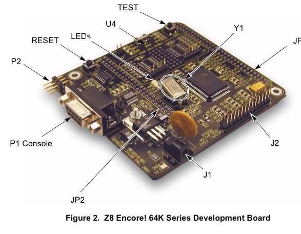 Eso es lo que el Zilog Z8 Encore! costos de kit de desarrollo de microcontrolador de 8 bits. El Z8 Encore! microcontroladores están disponibles con 1K a 64K de memoria RAM flash. Para velocidad, funcionan en 5 - 20 MHz y dependiendo de la viruta, están disponibles en diferentes paquetes de 8 a 80 pernos. El kit de desarrollo de $39,95 contiene una placa de desarrollo con pines de entrada/salida, una fuente de alimentación de verrugas de pared, cable de la computadora (USB o serial para conectar su computadora a la Junta de desarrollo) y gratis compilador de C y ensamblador que se ejecuta bajo Windows. No necesitará comprar o fabricar un programador, ya que puede programar el chip de la derecha en el circuito que has construido--sin tener que quitarlo y reprogramar en un programador.