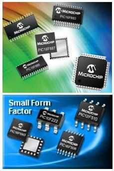Memoria Flash basado en microcontroladores PIC entre actualmente vanishingly pequeñas virutas de 6 pines en SOT23 paquetes y 100pin TQFPs. La arquitectura básica se ha extendido a los chips con un Alu de 16 bits y DSP funcionalidad integral.