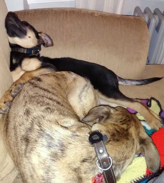 Cuando la lluvia por primera vez el cachorro, ella nos miraba como "¿DID YOU?". Harley tenía todavía que aprender sus modales, por lo que a ojos inexpertos, vería como si lluvia odiaba a Harley. Es normal para perros adultos a hacer ruidos de gruñido cuando está tratando de corregir el comportamiento del cachorro. Es su manera de decir "Hey, no lo hacen". Pero si parece que tu perro adulto ha tenido suficiente, es hora de darle un descanso. Su trabajo como el ser humano es establecer límites y asegurarse de que nadie se lastima.