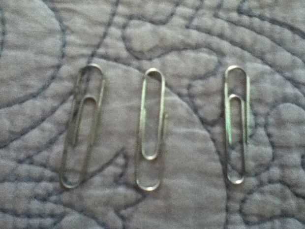 1) dos grandes dimensiones sujetapapeles 2) un par de pinzas. 3) y una cerradura.