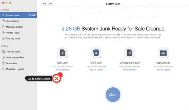 Esta herramienta le permite eliminar sistema de basura, basura de Internet, Cookies maliciosas y scan de virus. También puede utilizarlo para encontrar fácilmente los archivos viejos y grandes, duplicados y eliminar archivos temp de iPhoto y algunos otros juncos.
