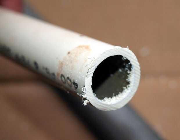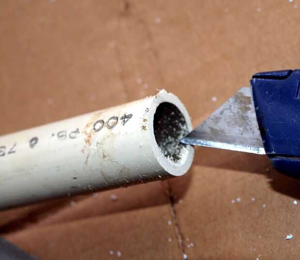 Cuando usted corta un tubo que a menudo no será recta y a menudo tendrá fresas en él. Un archivo de diente grande lo aplana hacia fuera muy bien. Un cuchillo funciona bien para limpiar el interior borde. Si usted deja material plástico en el tubo se terminan a menudo en las pantallas de la llave de su fregadero. Así que mejor limpiar la basura menos en la línea de agua.