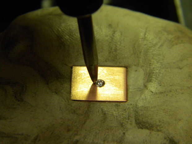 Hay 2 tipos de instrumental quirúrgico que se puede utilizar aquí. La primera es la más tradicional, la ronda señaló pulidores. Con la herramienta apuntada hacia abajo y ligeramente a un empuje de ángulo hacia afuera con un movimiento de barrido hacia el borde superior de la tela hacia fuera. La forma de la herramienta y cómo empuja el metal hace que el material justo por encima de la piedra para tirar hacia la piedra. Un medio muy difícil de ajuste. El segundo tipo de pulidora es más fácil de usar. Colocación plana de la herramienta contra las facetas de la corona de la piedra, empuje con la punta en el borde de metales hacia afuera, girando la pieza. Esto es menos probable que Deslice y rayar la superficie. También se hace para ajuste rápido y un mejor ajuste final.