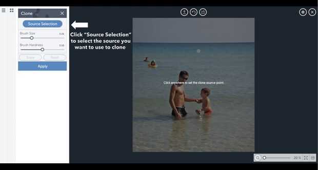 Paso 2: En 'Selección de la fuente', haga clic en por parte de la foto que desea clonar (copiar).