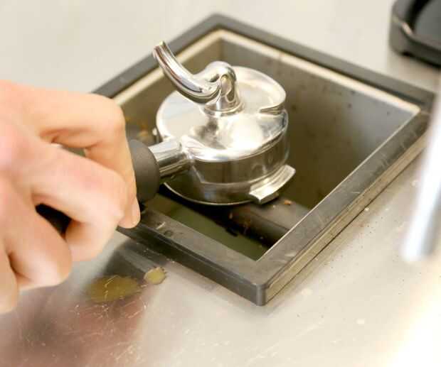 Si, cuando se quita el porta filtro, la superficie de los terrenos es acuosa, significa que no aplique la presión necesaria durante el proceso de compactación en el paso 3. No desesperes, simplemente trate de usar más fuerza la próxima vez. Finalmente será tener una idea de lo difícil a empuje para alcanzar la perfección shot de espresso!