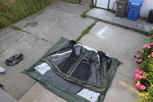 estaba dotado de una tienda de campaña Quechua 2 segundos a amigos que tenían prisa para dejar su camping y no tenía espacio en su equipaje para volar a Europa con él. Se trata de una tienda poco ingeniosa. Es una tienda pequeña, dos personas que tie