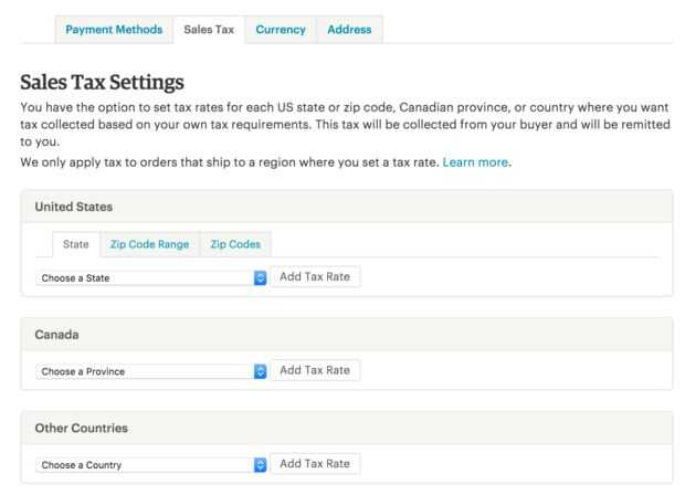 Una vez que su negocio registrado, usted debe recibir información sobre la recogida de impuestos también. Puede configurar Etsy para recoger impuestos automáticamente cuando venden cosas. Entrar en la configuración de la tienda y luego ir a finanzas. En finanzas, verá una sección titulada "Impuestos". Entrada que áreas le gustaría recoger impuestos y cuánto cobrar y estarás listo!