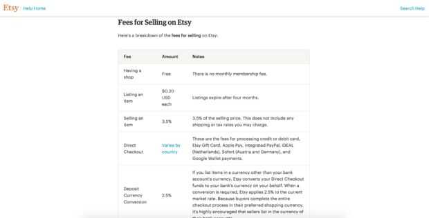 Paso 2: Tarifas para la venta en Etsy + tu Etsy Bill