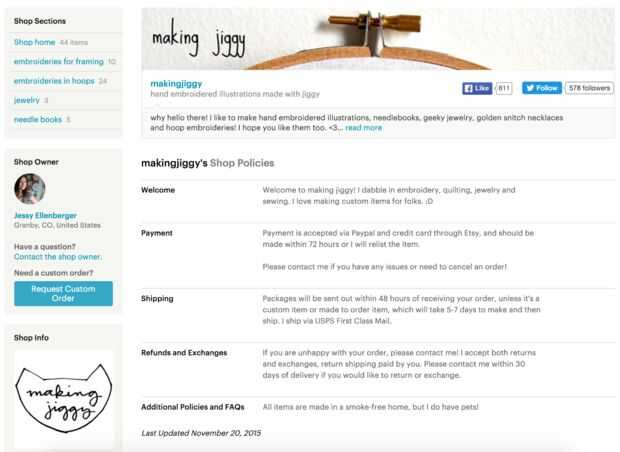 Si no está seguro acerca de cualquiera de ellos, echa un vistazo a algunas de las grandes tiendas en Etsy para tener una idea. También puede tomar un vistazo a la Guía oficial de Etsy para escribir sus políticas.