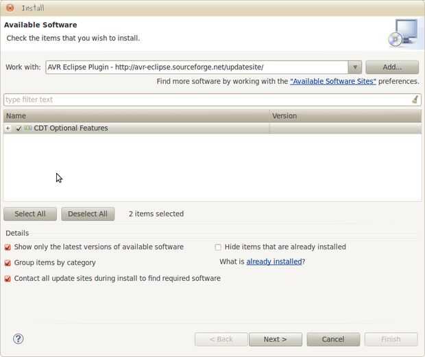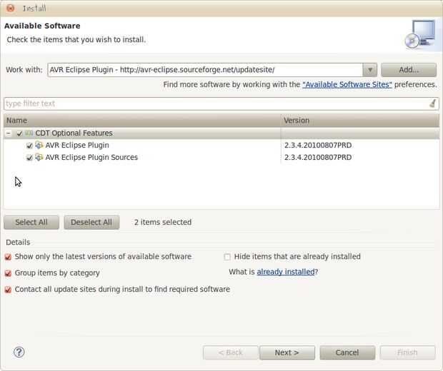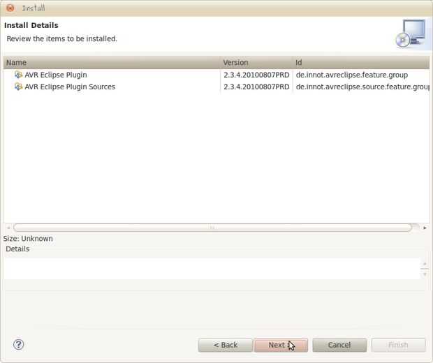 El plug in de AVR permite tratar fácilmente con el AVR desde dentro de Eclipse. Una vez instalado permitirá construir e implementar un proyecto de C a un dispositivo AVR. También hay características aseados como poder levantar datos en chips sin tener que referirse a la hoja de datos.