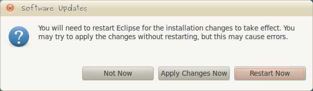 Un pop-up que le informa que debe reiniciar eclipse aparecerá cuando finalice la instalación. Seleccione reiniciar ahora. Eclipse será apagado y reiniciar. Cuando se reinicia el eclipse le pedirá que seleccione un espacio de trabajo (Seleccione su área de trabajo si quieres diferente uno que sugirió o si no sabes lo que esto es sólo pulse OK). Ahora se instala el Plug in de AVR.