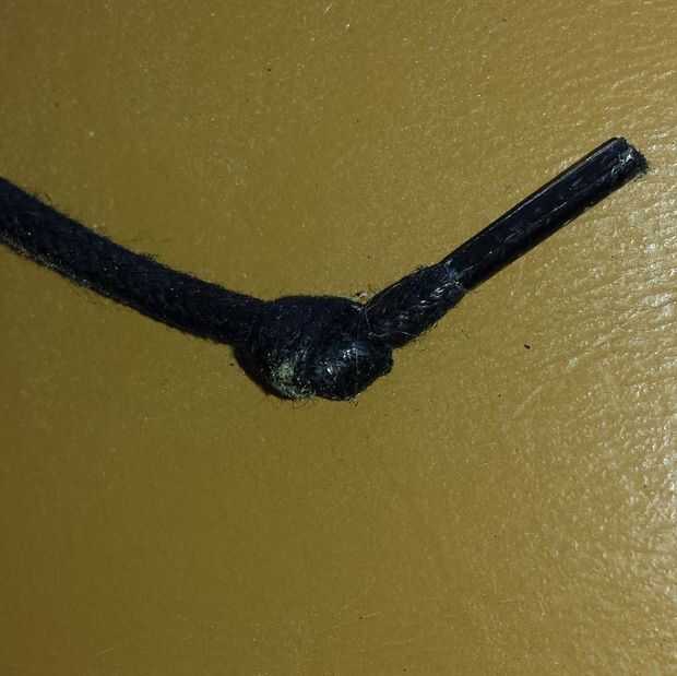 Un nudo estándar en un extremo del cordón. El nudo impide que el cordón tirando a través del orificio.