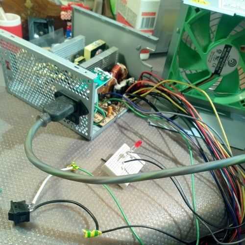 Fuentes de alimentación de PC ejecutan sólo si se solicita. Para la prueba, tienes que crear una conexión entre un cable GND (principalmente negro) y el PGalambre - buena energía - (color gris para mí). Esto le permitirá encender el generador que de lo contrario no funcionaría.