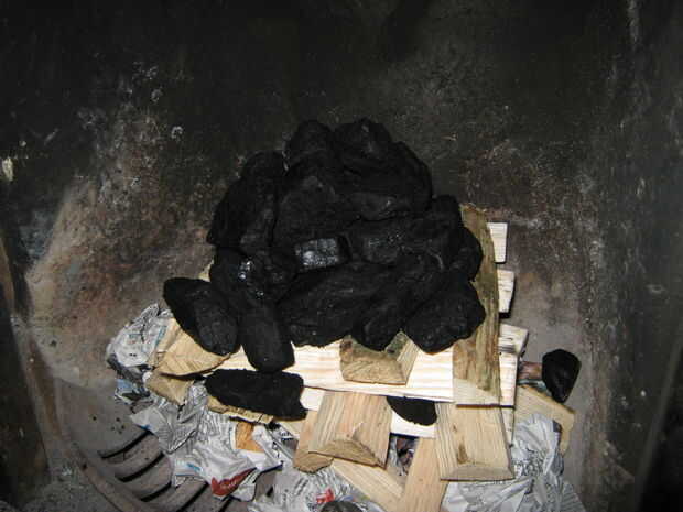 Escoger piezas que son aproximadamente el mismo volumen que una pelota de golf - demasiado pequeño y tienes durchfall y pobre flujo de aire. Escoger piezas que son demasiado grandes y no consiguen suficiente calor de la madera para encender correctamente.