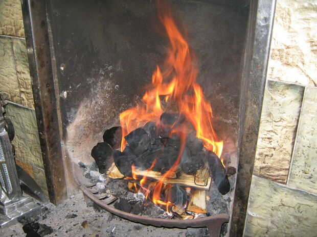 Carbón necesita tiempo, el fuego se blaze muy bien mientras hay madera y papel de la izquierda, pero todo lo que necesita de celulosa-combustible para calentar los trozos de carbón que cuando se ha ido el carbón del fuego es autosustentable. Carbón produce gas y tar cuando se calienta sólo cuando se "secó" hacer llegar el fuego 99% carbón al rojo vivo (o más) que hace carbón caliente.