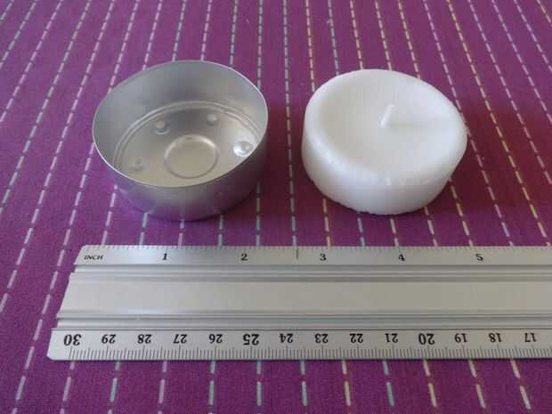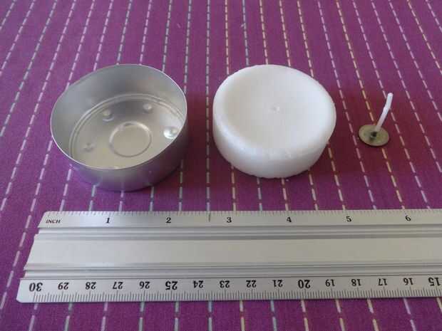Saque la vela de su envase de aluminio, luego retire la mecha. Dejando un bloque de cera.