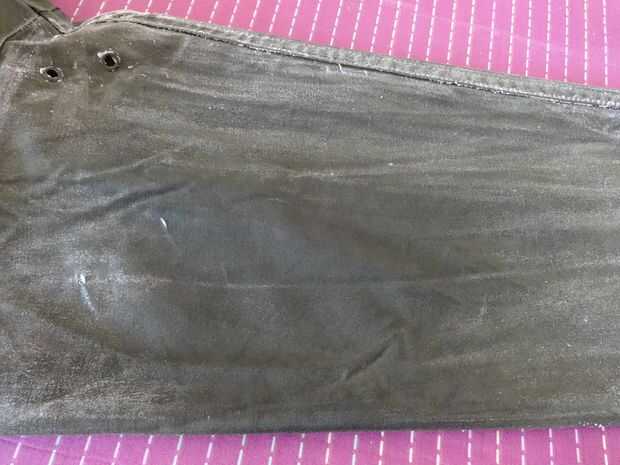 Es un método infernal. Requiere el hierro que se celebrará el completo de calor justo por encima de la tela encerada (aprox. 5mm) para las edades antes de que la cera empiece a derretirse. Porque la chaqueta estaba arrugada, la plancha caliente los bordes de la chaqueta pero no los canales. Después de 10 minutos de dolor del músculo, precisión manteniendo y constante observación de la cera, he conseguido un montón de no mucho.