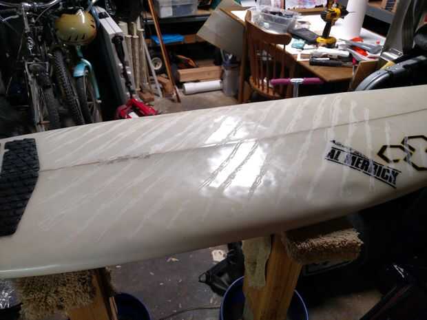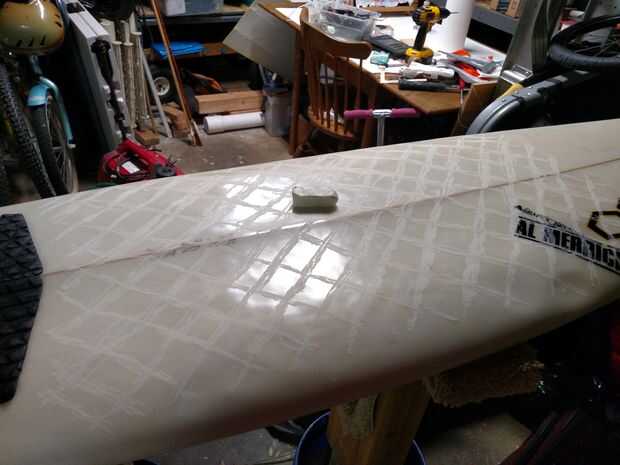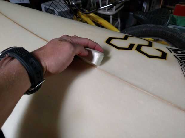 Agarrar alguna cera de basecoat, y empezar a hacer líneas de 45 grados a través de la cubierta de la Junta. Cuánto hasta la cera depende de usted. Más comúnmente, la Junta es encerada a alrededor de 2/3 para arriba, me gustaria cera hasta un poco más arriba de eso y algunos profesionales, que se transmite y cosas se la cera hasta la nariz. Es todas sus preferencias personales. Una vez que has hecho líneas de 45 grados hacia arriba, luego hacer las líneas 135 grados o 45 grados al revés de cera, así que debe conseguir un patrón de X en la cera.