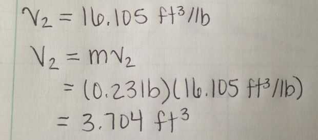 • Usted utilizará la ecuación V_2 = mv_2. V_2 es el volumen, m es la masa y v_2 es el volumen específico.