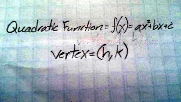 Está situado en el vértice de la cuadrática (h, k), donde h y k son los números en la forma de transformación de la función.