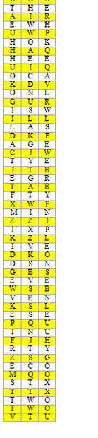 Hay 259 caracteres en la matriz de K2-K4. Sanborn nos dice que debe ser 250. Así las filas de la parte tres inferior no se incluyen al calcular la solución de K2-K4. Considerar la doble 'dos' como el ojo de la cerradura y el 'VTU' como la parte ot la tecla que se queda fuera de la cerradura y se utiliza para girar la llave.