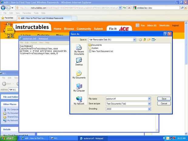 Entonces guarde como todos los archivos como autorun.inf (no. TXT.) derecha por wirelesskeyview.exe en la capa superior de su unidad usb. Una vez que se guarda, expulsarlo.