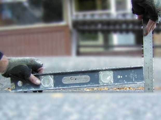 Al igual que la imagen, puede toma el nivel y nivelarla en el camino. Conjunto entonces la regla contra él y medir la altura que toma para que el nivel a nivel. Luego tomar la medida a la regla dividida por la longitud del nivel. Le dará su grado decimal.