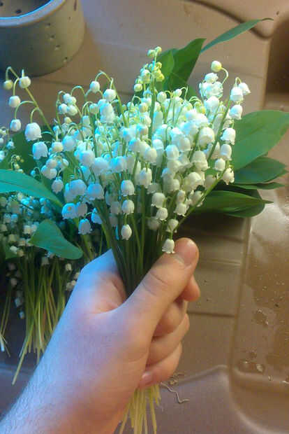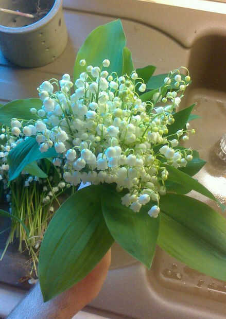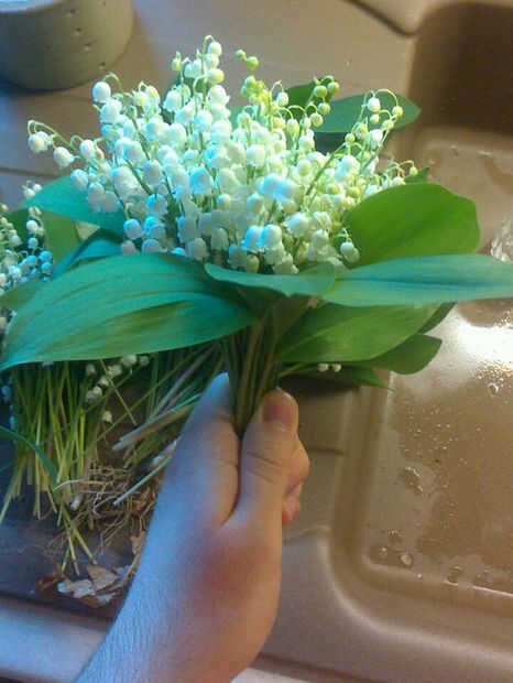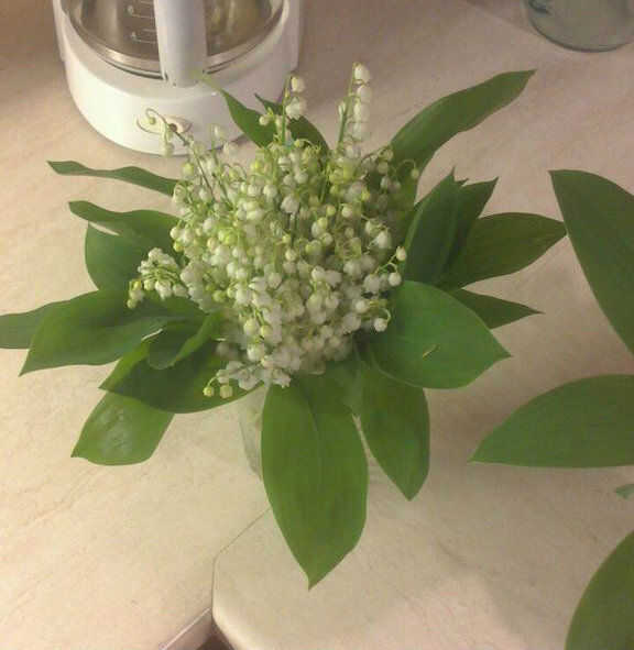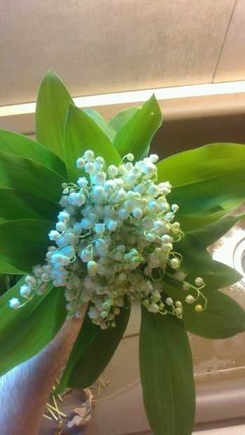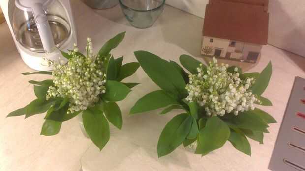 Obtener un vaso pequeño (yo les pongo en un vaso), poner agua en él e Inserte cuidadosamente el ramo. No es necesario hacer uno grande, dos pequeños son mejores. Ajustar las hojas para tener algo bonito...