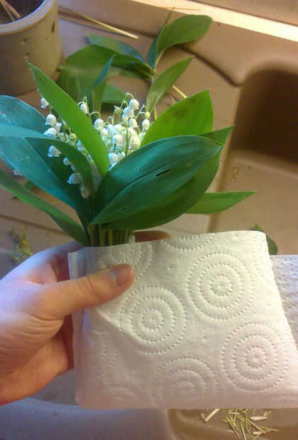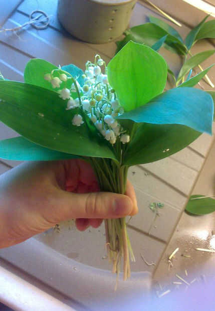 además de mis otras interpretaciones de Pandora es el lirio de los valles, que parece ser casi todo el mundo es favorito. Estos son huevos de ganso, adornados con hojas de mano esculpida de Sculpey 3 que cuece al horno en las conchas pintadas color r