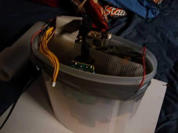 En la posición vertical mi envase, encontré la forma más fácil de todo lo que sientan bien algunos alambre grueso a través de dos de los agujeros de la placa madre, sobre el borde, grabado hacia abajo del conducto hacer. Es extraordinariamente robusto.