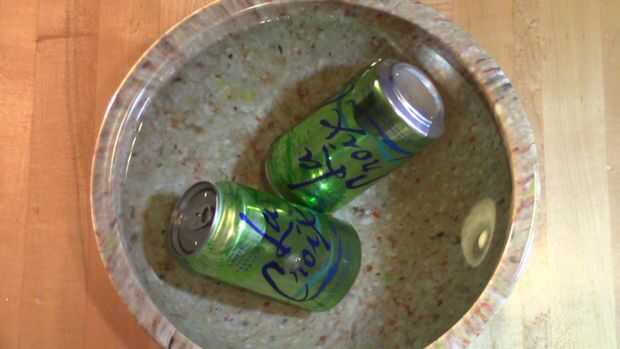 Cómo enfriar una lata de bebida en 2 minutos. Un truco simple de la ciencia para darle una bebida rápida fria que no consigue diluida como lo haría si tuviera que poner cubos de hielo en su bebida. Perfecto para el enfriamiento de latas de cerveza y