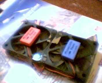 Tomé una goma de borrar lápiz y guled para la base de cada ventilador.