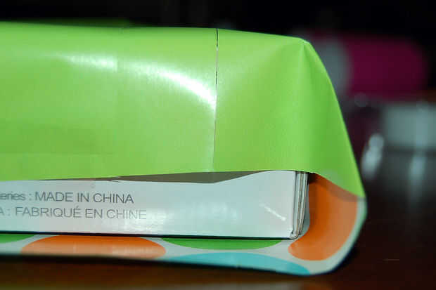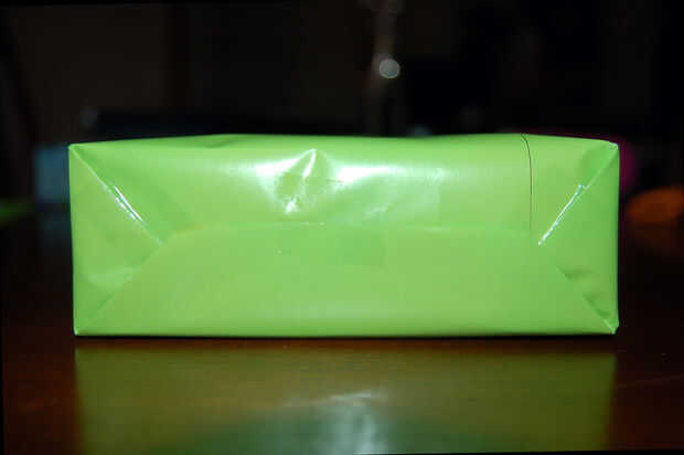 Pliegue uno de los bordes y doblar en un aspecto de triángulo (imágenes muestran cómo hacerlo).  La cinta firmemente la parte superior del triángulo.  Repita el procedimiento en el otro borde.  Tome la aleta que no ha sido tocada aún y doblar contra la caja.  Cinta de la parte superior del triángulo.  Repita los pasos 2 y 3 en el otro lado.  Entonces usted es hecho! :)