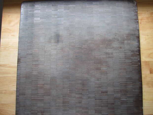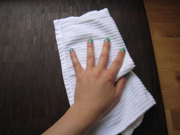 Volver sobre los lados del tablero con el paño para quitar el exceso de aceite. Ahora eres buena para cortar en él!