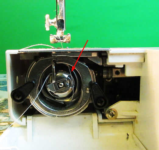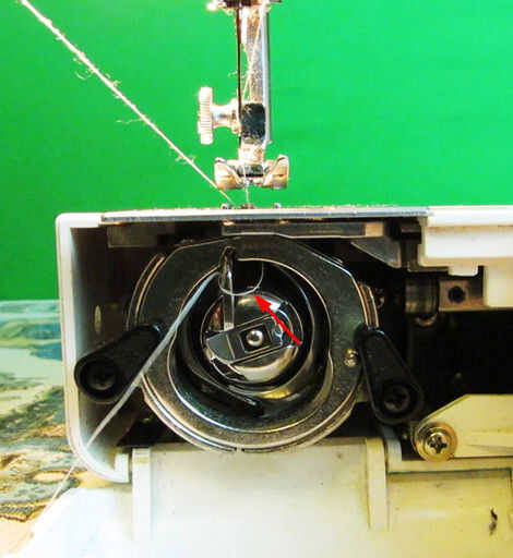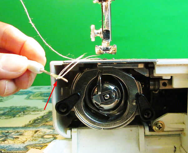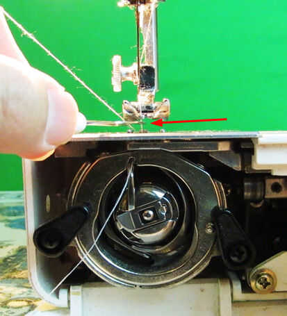 -Tire del hilo superior y debe formar un círculo y ponerse el hilo inferior
