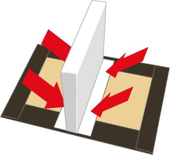 Coloque el taco de papel encuadernados de modo que centralmente está apoyado en el tablero de la columna vertebral y sólo el fino algodón "alas" se pegan a las juntas de cubierta.