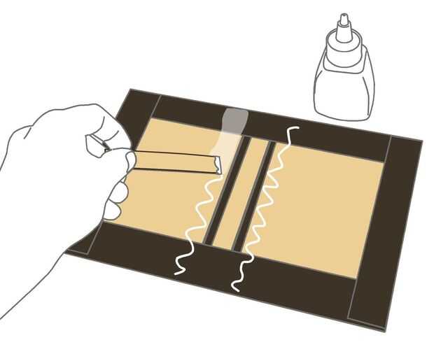 Manchar algunos pegamento blanco (o pegamento de solución de goma) en dos franjas hacia abajo los bordes mediados de las juntas de la tapa teniendo cuidado de no conseguir cualquier pegamento en el tablero de la espina dorsal.