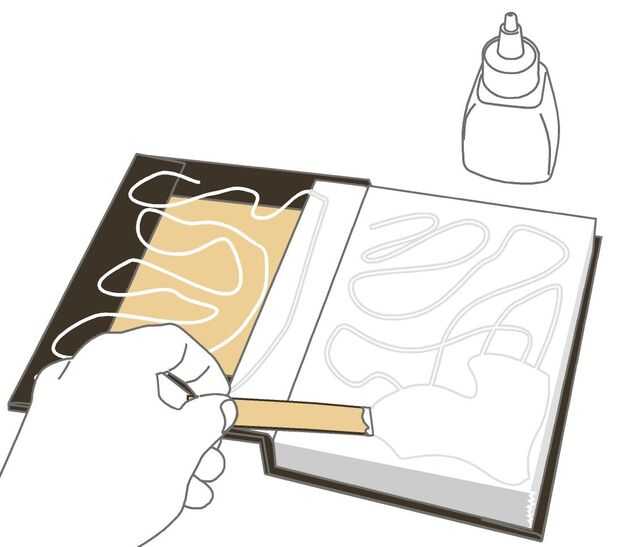 Untar el interior de la tapa y la primera página con pegamento blanco o pegamento de solución de goma.