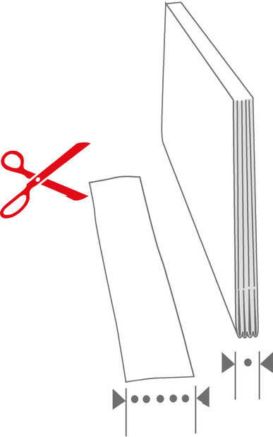 En primer lugar, corte un pedazo de tela delgada para la misma longitud que la altura de la página y aproximadamente cinco veces el espesor de todos los folios ligan.