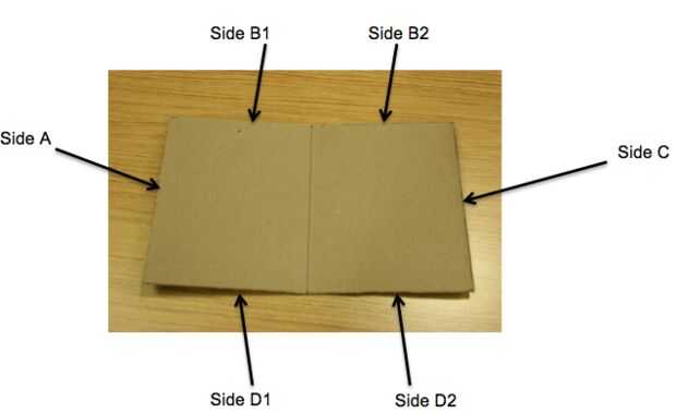Trace una línea vertical hacia abajo en el centro de la cartulina, paralela a la shortersides. Vea la figura 2.