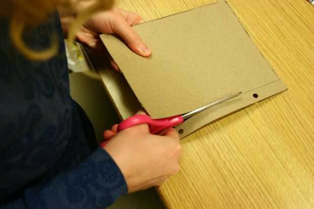 Con las tijeras, corte cuidadosamente a lo largo de la línea para eliminar la franja amplia de ¾" de cartón. Vea la figura 5