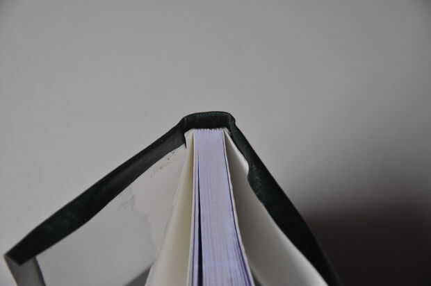 Así, en primer lugar, cortar a ambos lados de tu libro, en la parte superior e inferior una pequeña abertura en el papel entre la espalda de cartón y la tapa. Es fácil con unas tijeras